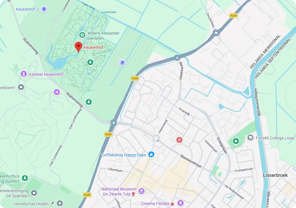 Closest Landmark: Town of Lisse (1 km away) and Keukenhof Castle, located right next to the gardens.